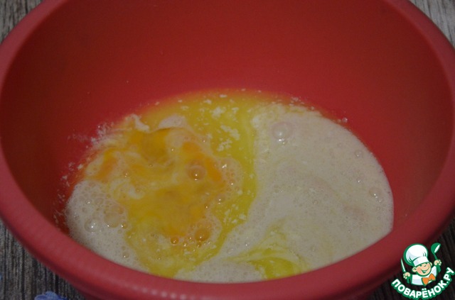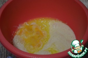 Добавляем слегка взбитые яйца, перемешиваем.