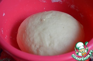 Готовое тесто убираем обратно в чашку (можно смазать стенки маслом), накрываем влажным полотенцем и оставляем в теплом месте на 30 минут (я оставила на 1 час при комнатной температуре).