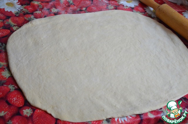 Готовое тесто раскатываем в пласт толщиной 4-5 мм.