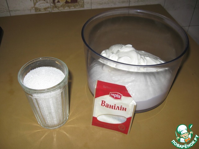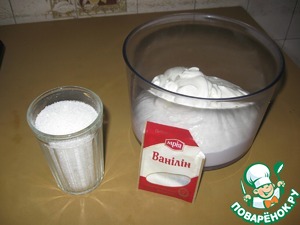 • Для крема понадобится 1 кг сметаны, 1 стакан сахара и ароматизатор по вкусу, у меня ванилин.