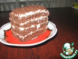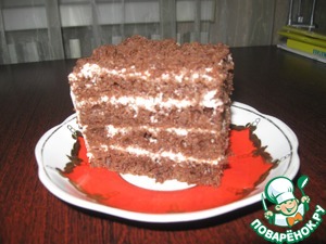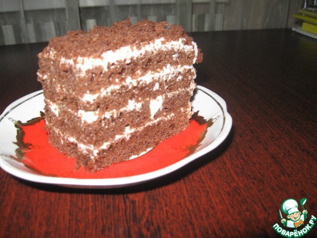 Основа рецепта позаимстована в одном из харьковских кафе. Раскладка, естественно, тоже кафешная, торт получается большой, но для торжества с большой компанией в самый раз. Торт получается с выраженным шоколадным вкусом, а экпериментируя с ароматизаторами в креме можно получать любимые сочетания. Это мой первый рецепт на сайте, не обессудьте за погрешности. Буду признателен за любые конструктивные предложения.