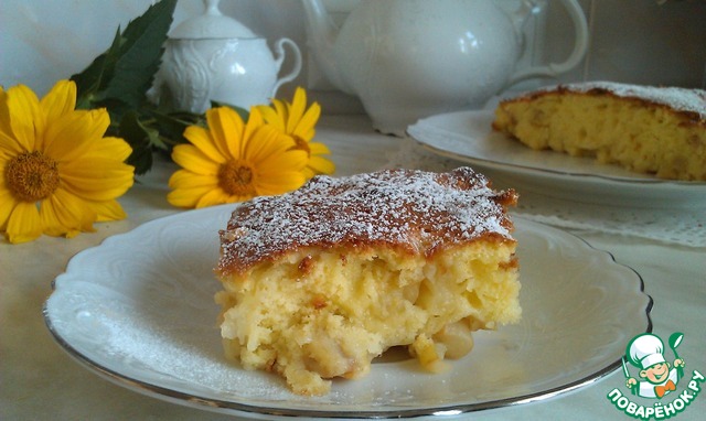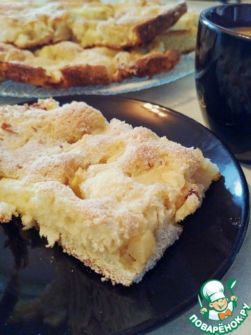 За этот рецепт хочу сказать "спасибо" автору под именем Dina, которая разместила его на одном из кулинарных сайтов. Подкупили доступность ингредиентов и простота приготовления, результат был превосходным. Пирог получается пышным, ароматным и вкусным. И последним его преимуществом является время приготовления, пирог можно смело занести в категорию " гости на пороге"!