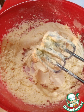 Размягчённое масло смешать с сахарной пудрой и ванильным сахаром - взбить миксером 5 мин.