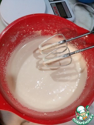 Добавить подсолнечное масло и снова взбить 5 мин.