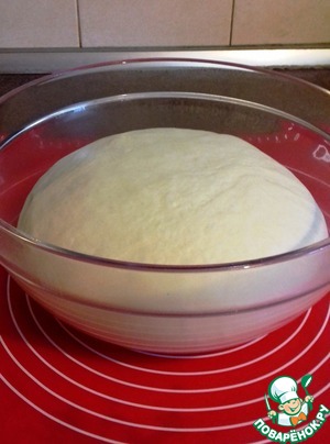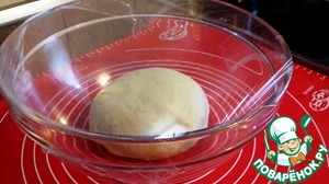 Формуем шар, кладем в слегка смазанную растительным маслом емкость, закрываем пищевой пленкой, и даем тесту расстояться до увеличения в 2-2,5 раза при комнатной температуре. Это займет около 40 минут.
