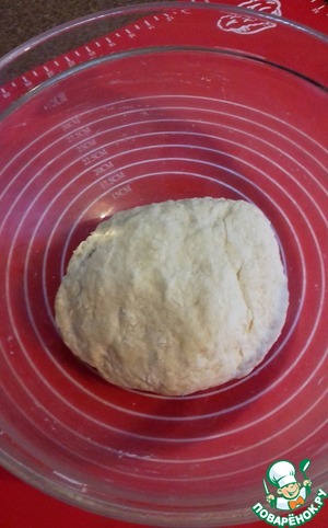 Замешиваем тесто до однородности. Накрываем его полотенцем и дадим постоять минут 10, чтобы расслабилась клейковина муки, тогда тесто лучше вымесится.