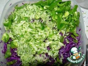 Витаминный салат из синей капусты, сладкого перца и огурца.