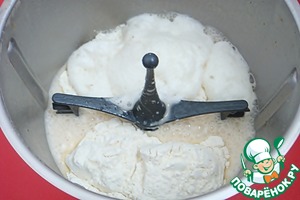 Всыпать оставшуюся муку и на средней скорости замесить однородное тесто. На это потребуется не больше 1 минуты.