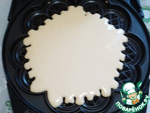 Налить тесто в вафельницу, учитывая, что оно достаточно сильно увеличится в объеме при выпечке.