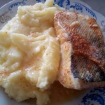 К этой рыбке идеально подойдет картофельное пюре. Здесь хочу поделиться с Вами своими секретами - возможно, они для кого-то окажутся совсем и не секретами, но вдруг пригодятся)) Горячую картошку я разбавляю не молоком, а подогретыми сливками 10% жирности. Вообще, чем выше жирность сливок, тем вкуснее, но не все могут себе это позволить (по состоянию здоровья, например). Кладу, как и все, сливочное масло. Потом перетираю уже размятую картошку через сито. Конечно, это процесс муторный, и не всегда у хозяюшек есть на это время, но если Вы не торопитесь... Пюре будет нежнейшим!) Готовое пюре очень хорошо посыпать укропом или петрушкой - особенно, если на горячее подается рыба. Буду рада, если кому-то из поварят пригодятся мои советы!) Ешьте на здоровье!)