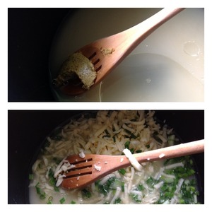 Добавить масло и горчицу, перемешать. Сыр натереть на крупной терке, лук мелко нашинковать. Добавить все к тесту. Перемешать.