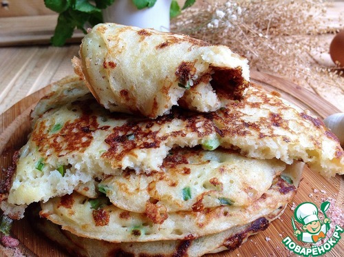 Очень вкусный и простой вариант толстых блинов с сыром и зеленым луком. Блины пушистые, мягкие, ароматные. Угощайтесь!!!