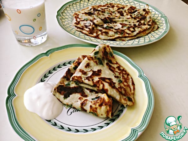 Ингредиенты для «Блины с сыром и зеленым луком»: