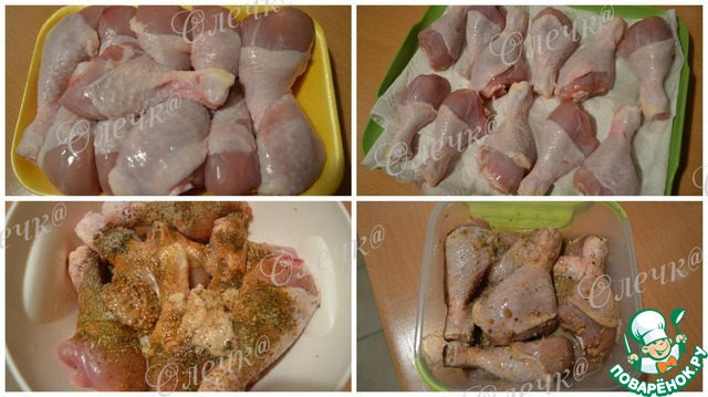 Подготовим ножки. Помоем и высушим на бумажном полотенце. Хорошенько перемешиваем с маринадом, плотно складываем в контейнер и оставляем минимум на 1 час. Я всегда мариную с вечера и оставляю на ночь. Чем дольше маринуется мясо, тем вкуснее, сочнее и ароматнее получается!