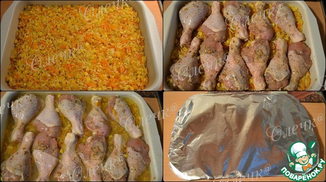 Рецепт «Куриные ножки на рисово-кукурузной подушке»: