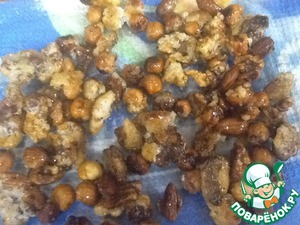 Делаем пралине. Для этого берем смесь орехов: я взяла грецкие, фундук и миндаль. Поджариваем/обсушиваем в духовке. Снимаем с фундука и грецких шкурку насколько получится.