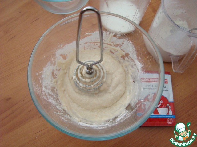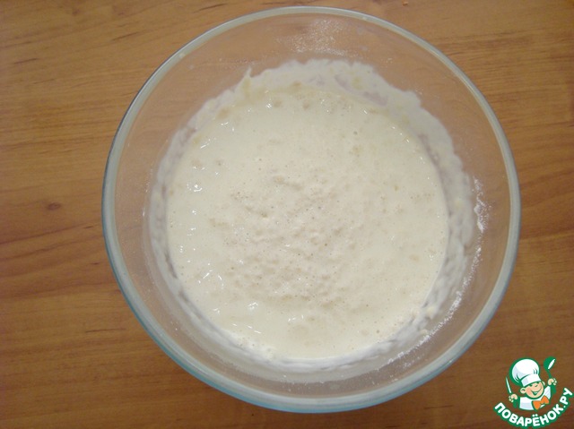 Добавляем муку 50 г и ставим в тёплое место на 15 минут.