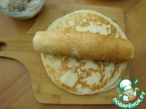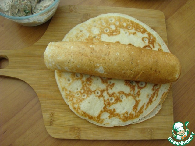 Рецепт «Блинные рулеты с сайрой и творогом»: