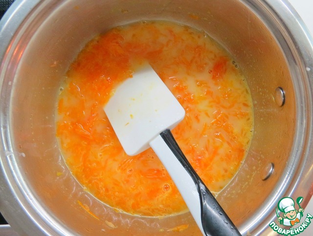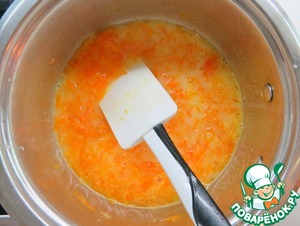 Тонкой струйкой влить в цитрусовый сироп, постоянно помешивая. Варить до загустения.