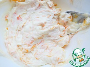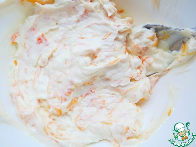В оставшееся 2/3 крема добавляем цитрусовое конфи (я добавила 50 г), перемешиваем до однородности.