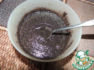 Делаем начинку. У меня в качестве начинки была уже готовая смесь, но очень просто приготовить её и в домашних условиях, просто перемолов в кофемолке мак с сахаром. На 200 гр мака 2 ст. л. сахара (сахар можно регулировать на свой вкус)
