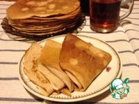 Добавить в тесто 1 ст л масла и выпекать блины. Сковороду разогреть, смазать маслом, вылить порцию теста. Печь обычным способом с двух сторон. |