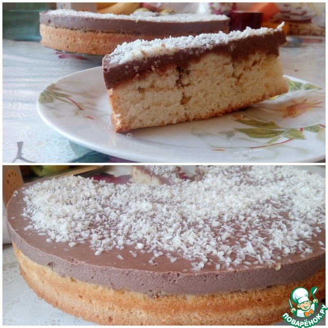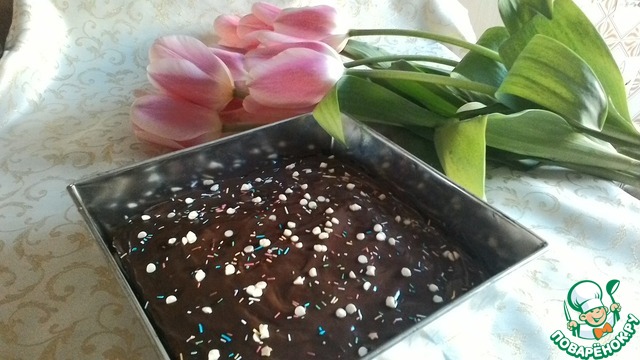 • Заливаем поверхность бисквита шоколадным соусом и даем настояться около 2-х часов.