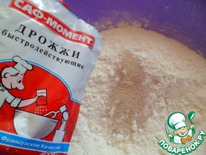 Перемешать муку с дрожжами "САФ МОМЕНТ"