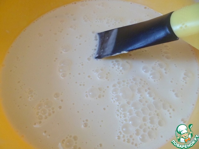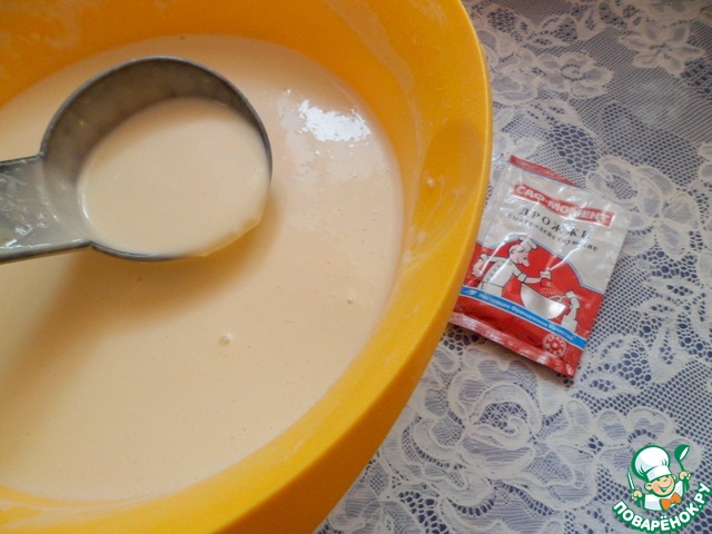 В 0,5 л теплого молока добавить сахар, перемешать.