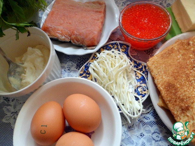 Ингредиенты для «Блины с красной рыбой и омлетом»: