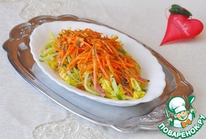 А салатик- прелесть, с любимой морковкой по-корейски. Очень вкусно)). Делала на 23 февраля. Муж в восторге. Вам спасибо и огромный плюс!!!