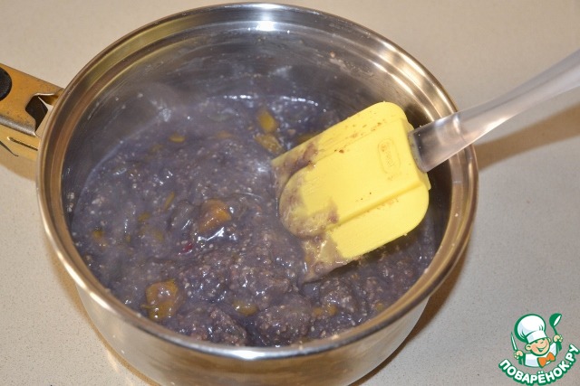 Затем ложкой выкладываем фруктовую смесь и слегка все перемешиваем.