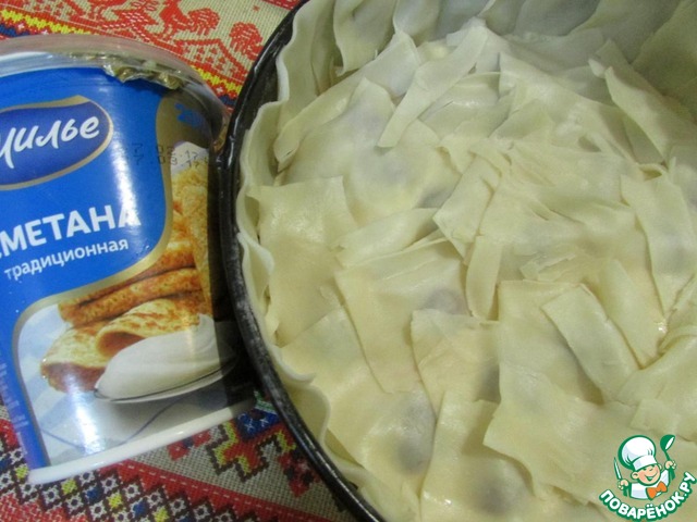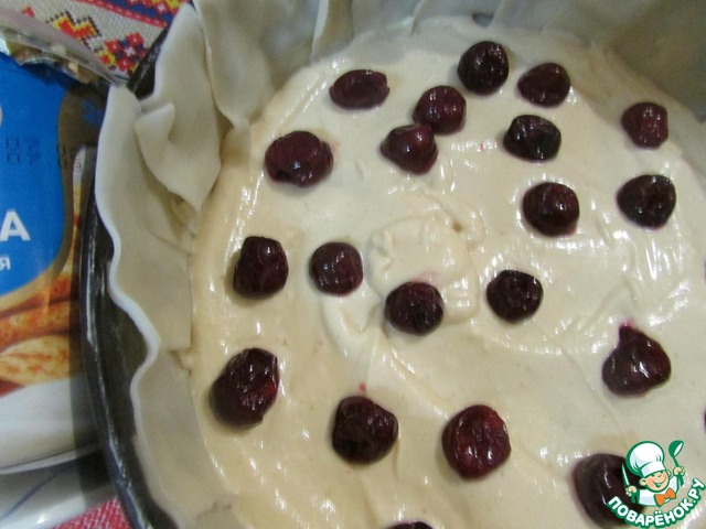 Накрыть вишню листами лазаньи. Продолжать чередовать слои (у меня 4 слоя, но может быть и больше, и меньше, все зависит от размера формы).
