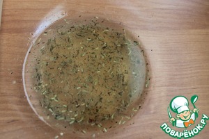 • Готовим соус: в глубокой миске смешиваем мед, масло, лимонный сок, соль и тимьян. Часть соуса откладываем в другую емкость.