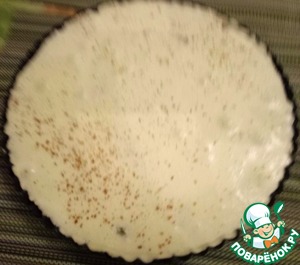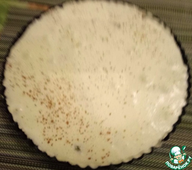 Выкладываем на тесто нашу начинку, разравниваем и сверху заливаем заливку, посыпаем молотым мускатным орехом.