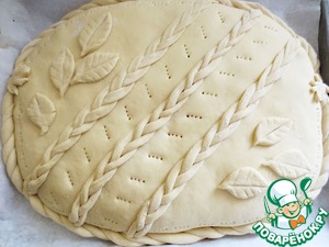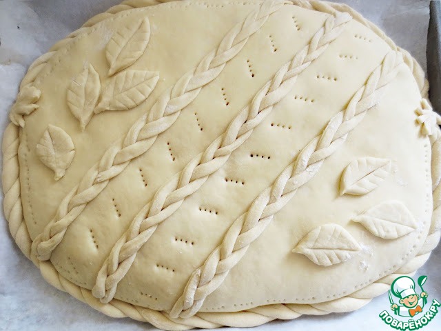 Взбить яичный желток с 1 ч. л. молока, смазать поверхность пирога. Оставить на 20 минут.