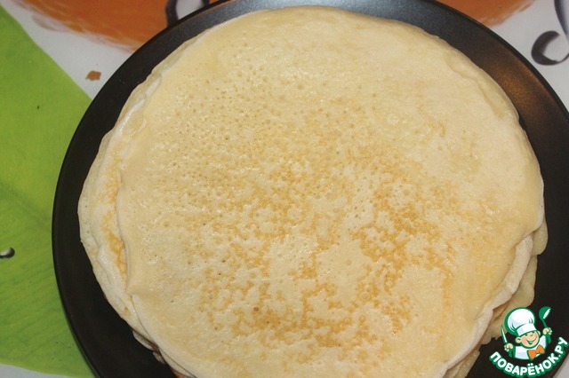Но, именно эти блинчики, я не смазываю. Поместить тарелку с блинчиками в пакет и закрыть. Немного остудить.