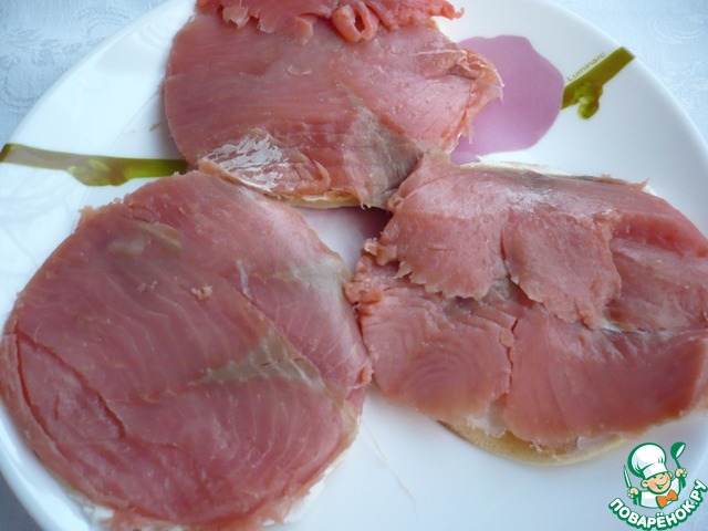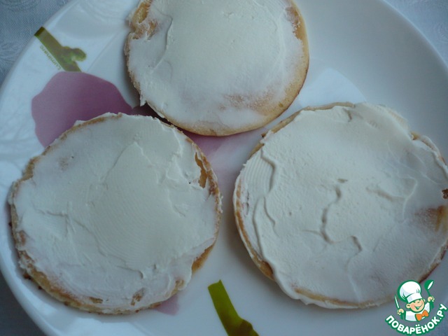Смазать блинчик сливочным сыром.
