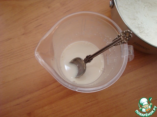 В четырёх столовых ложках тёплой воды растворяем дрожжи.