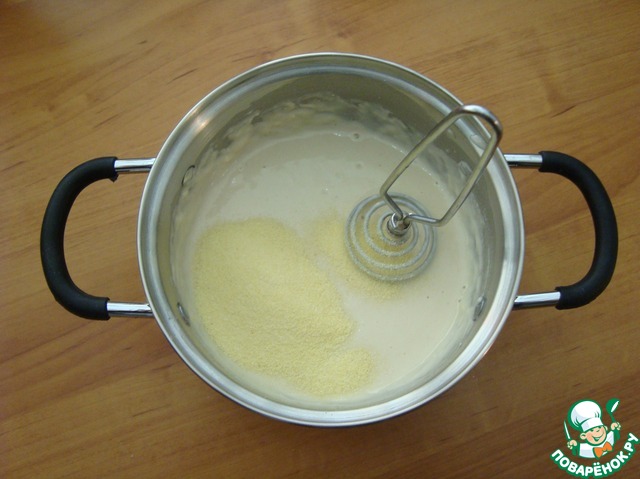 - Семолина (с горкой или просто манная крупа) — 2 ст. л.