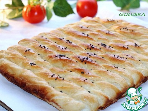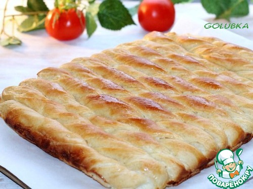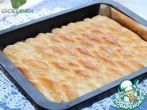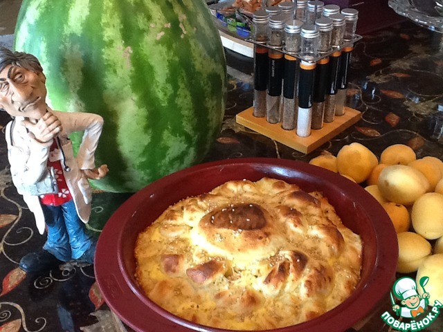 17. Включаем духовку на t 200 С и выпекаем пирог до румяной корочки, минут 20-30. Достаем пирог из духовки, смазываем сливочным маслом и накрываем салфеткой.