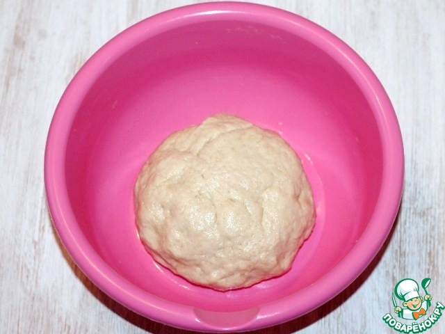 4... и опару. Если вы любите сладкое тесто, то можно добавить 2 ч. л. сахара. Замешиваем тесто до тех пор пока оно станет эластичным, мягким и не будет прилипать к миске и рукам.