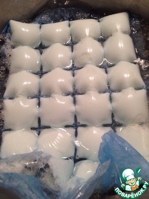 И любой белок очень хорошо помещается в формочку. Им после заморозки не теряет своих свойств у отличии от желтка.