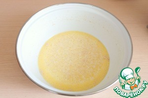К масляно-молочной смеси добавить сахар (1,5 ст. ложки), дрожжи (4 гр).