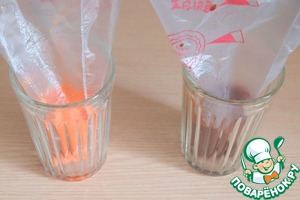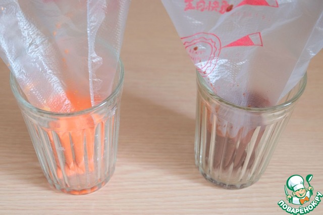 В кондитерские мешки поместить цветное тесто. Уголки срезать (примерно 1 мм)