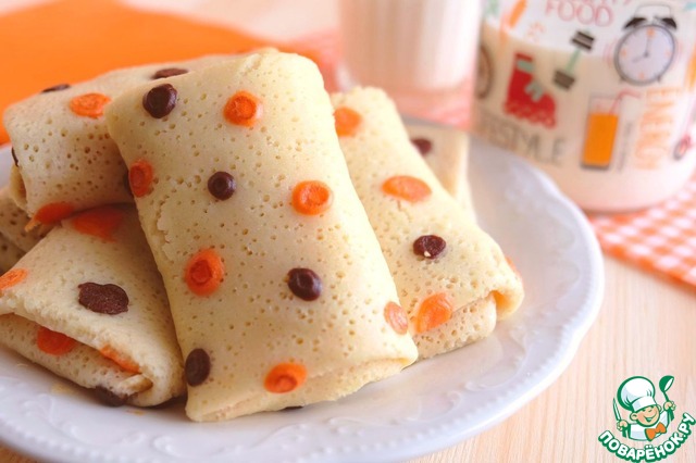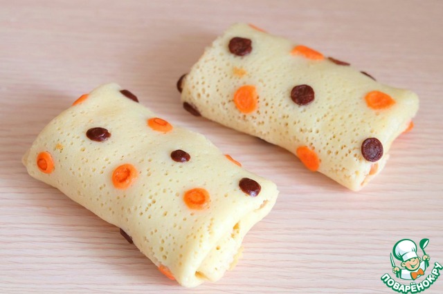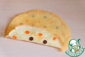 Выложить творожно- банановую начинку на блинчик. Свернуть конвертиком.