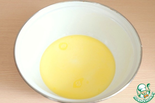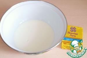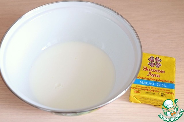 Добавить в молоко растопленное сливочное масло (50 гр)