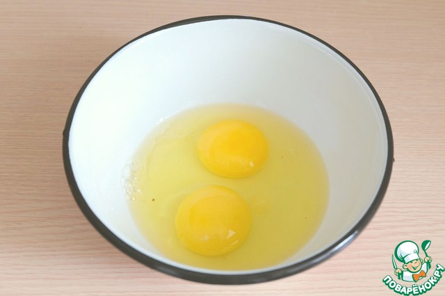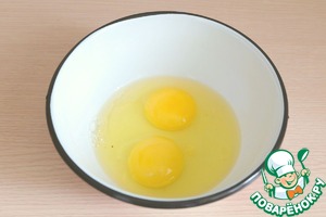 В отдельную миску добавить 2 яйца.