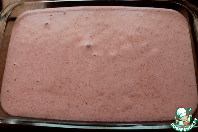 Выливаем суфле в стеклянную форму. Если у Вас силиконовая или металлическая, застелите ее предварительно пергаментом. Ставим в холодильник на 2 часа. Наше нежное клубничное суфле готово! Это невероятно ароматно и вкусно!)) При подаче можно посыпать его кокосовой стружкой или полить растопленным шоколадом, либо украсить свежими ягодами.