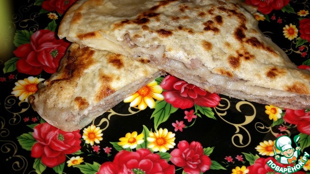 Каждую готовую лепешку разрезать на 4 части. Получится вот так. Мясо внутри получается таким вот слоем.